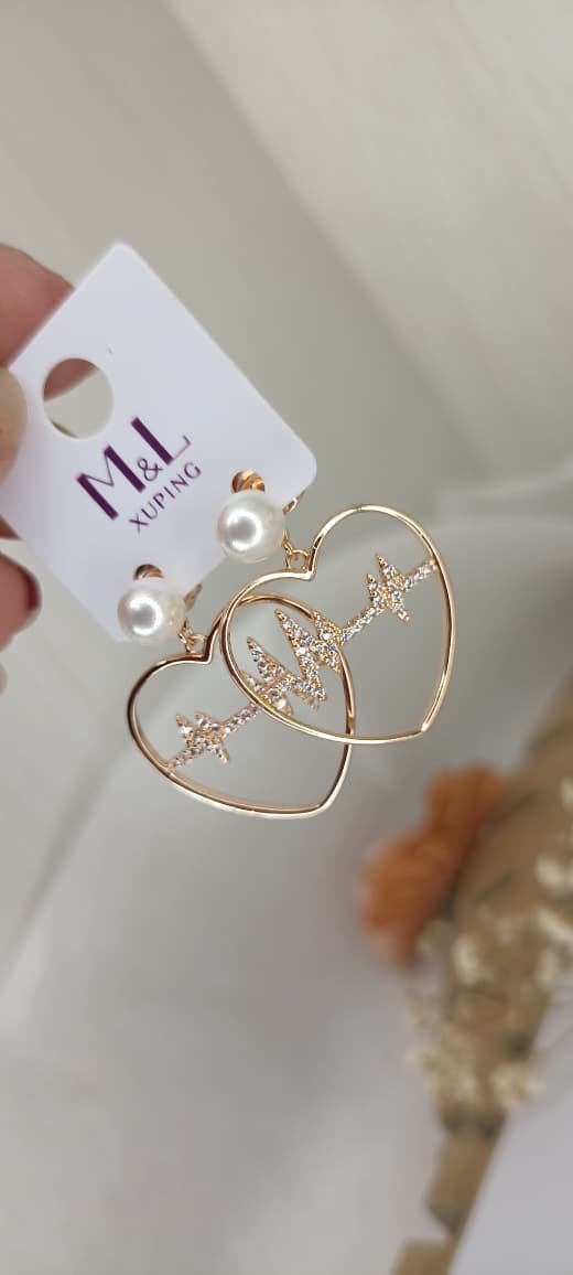 arete corazon latido chunky perla xuping m&L rose