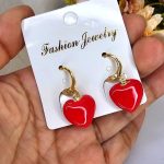 arete corazon rojo acero dorado