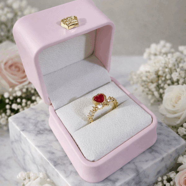 Caja para anillo 💍 tipo cuerina , venta por docena y unidad Rojo Rosado
