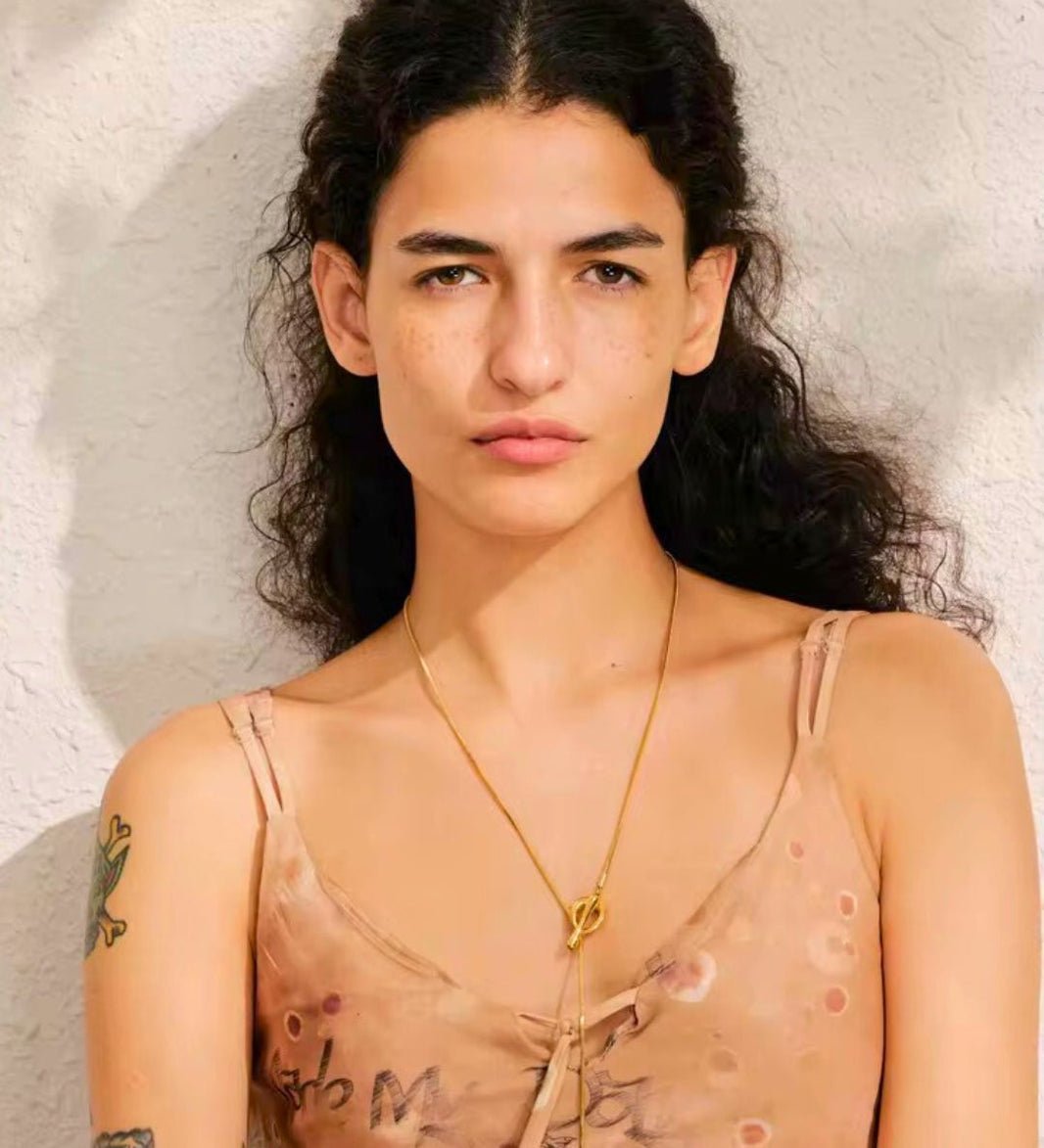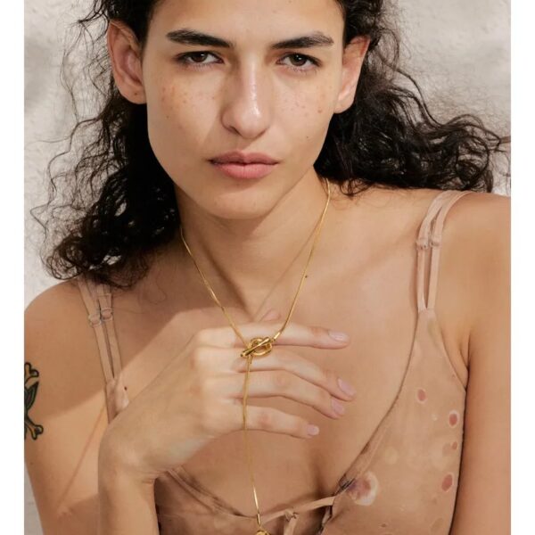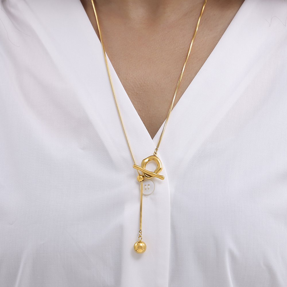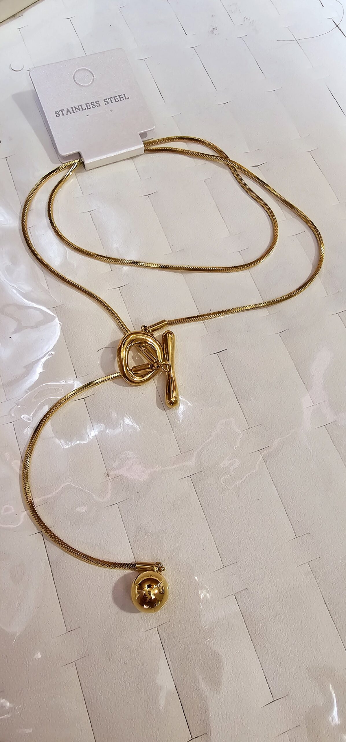 collar broche T, 55cm+10cm doble enchape acero 316* dorado