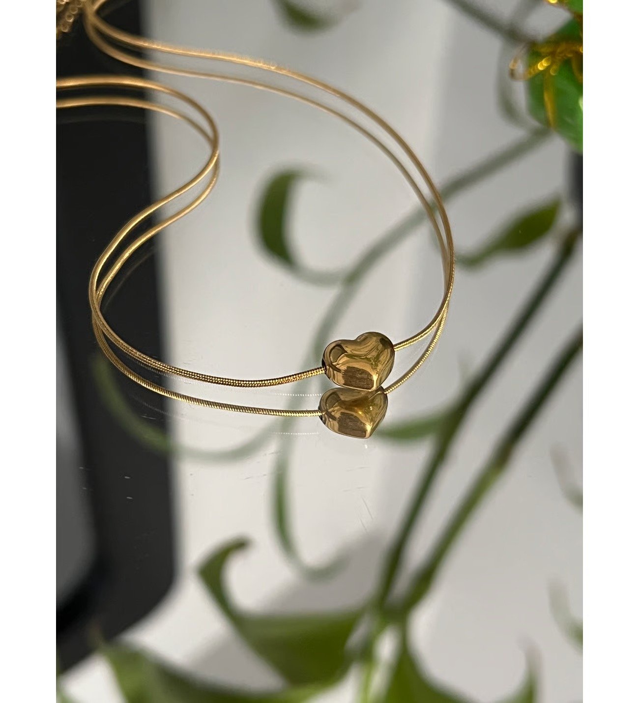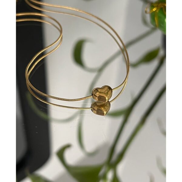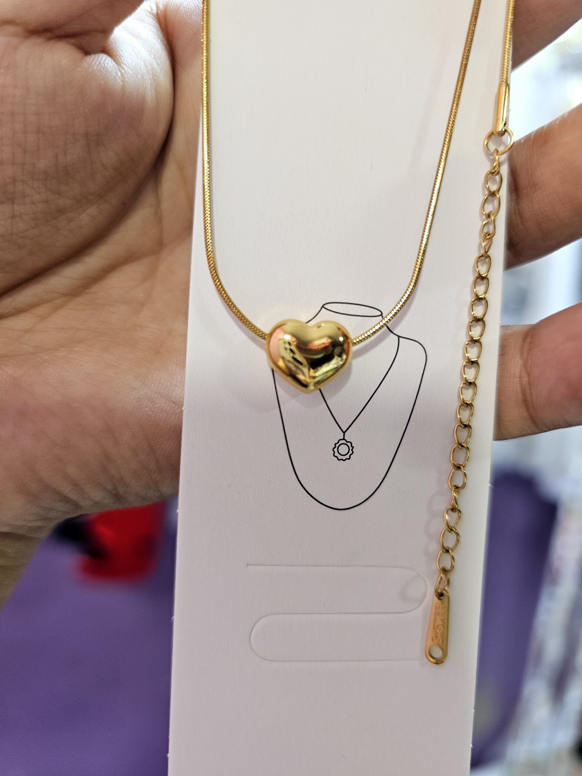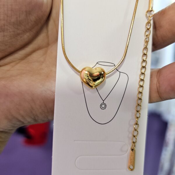 collar corazon bombita acero dorado, cadena cola raton con extensión