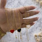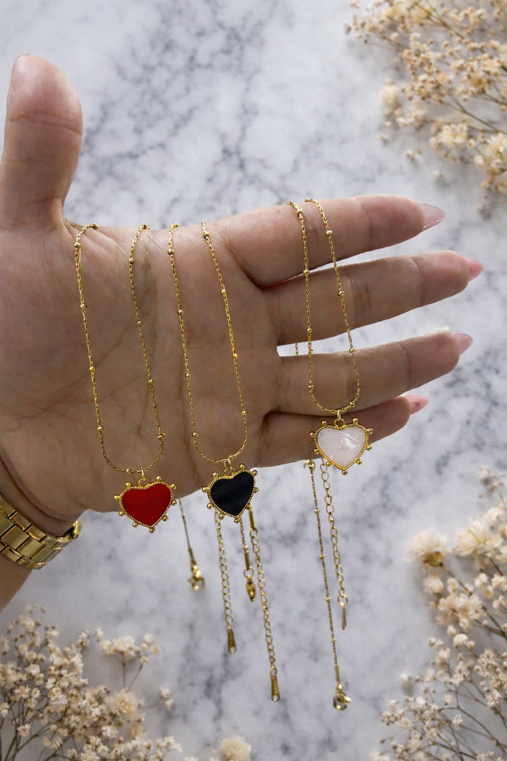 collar corazon rojo,negro, blanco acero dorado
