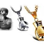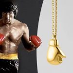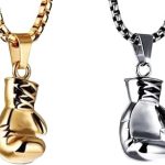 collar guantes de boxeo acero dorado y plateado 60cm