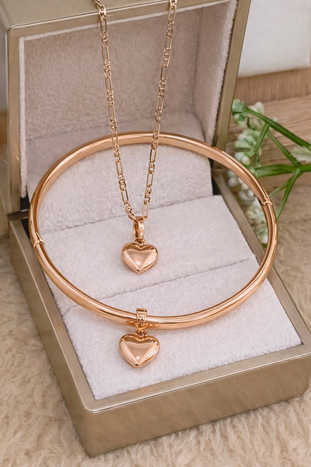 collar+pulsera corazon, juego xuping jewerly rose puñera, cartier 50cm