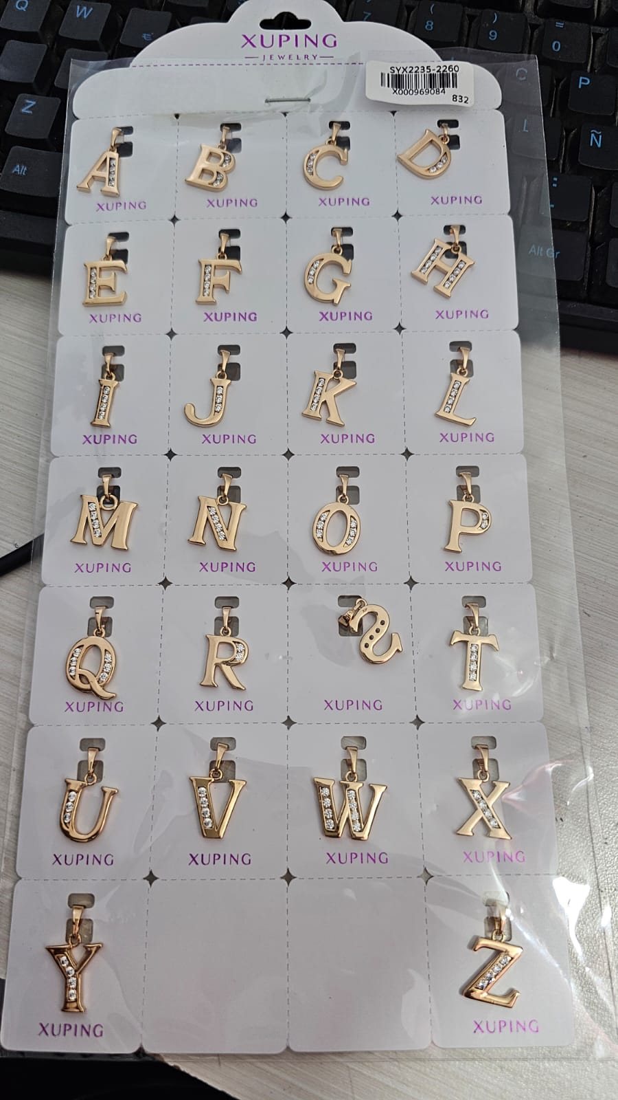 dijes iniciales clasico, blister de 26 und, xuping jewerly rose letras desde la A hasta Z