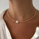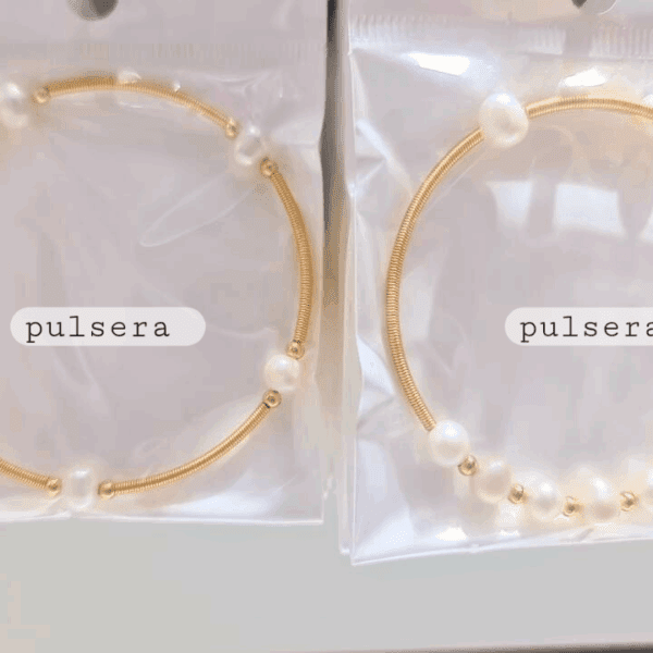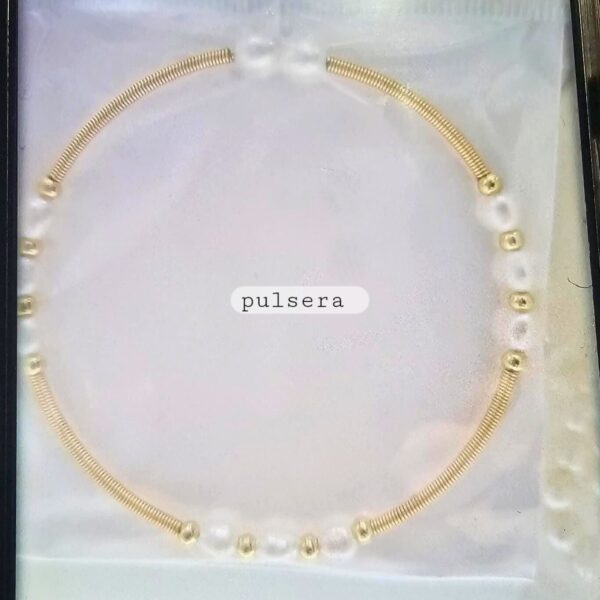 gargantilla collar perla de rio, pulsera acero dorado