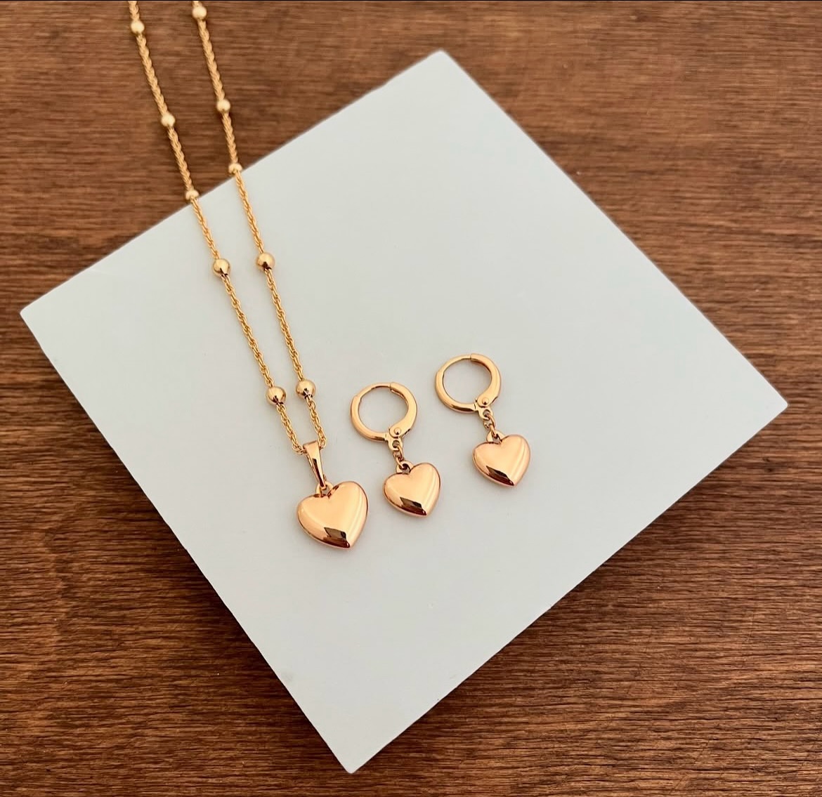 juego corazon xuping jewerly rose collar+aretes