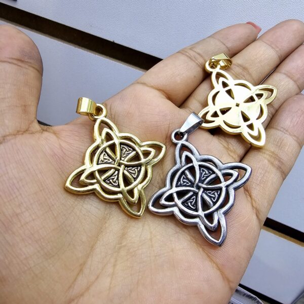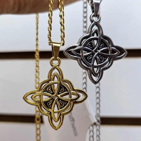 collar nudo de bruja caballero acero dorado y plateado