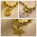 pulsera marinas billa caracol, cangrejo, estrella de mar dorado