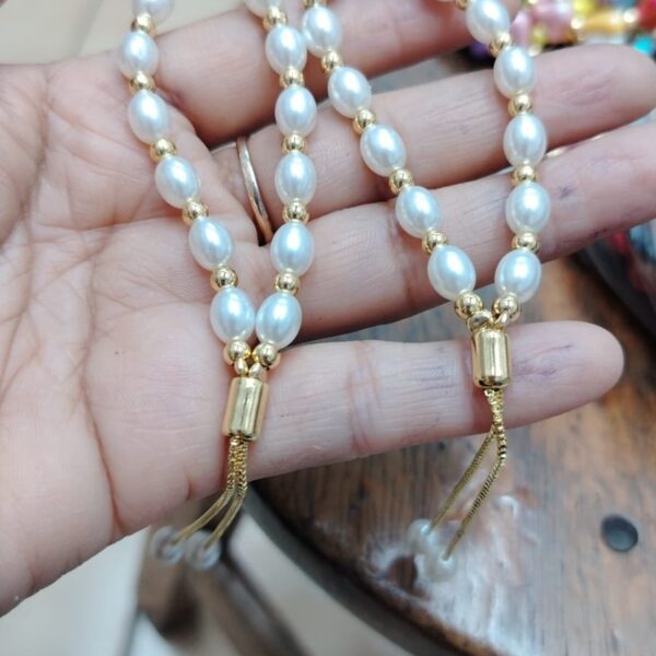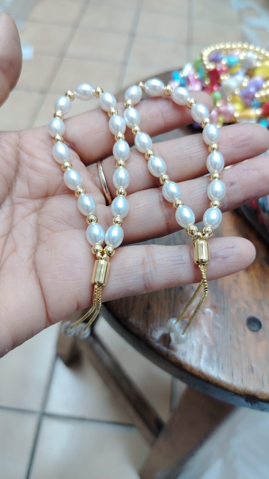 pulsera perlas acero dorado regulable
